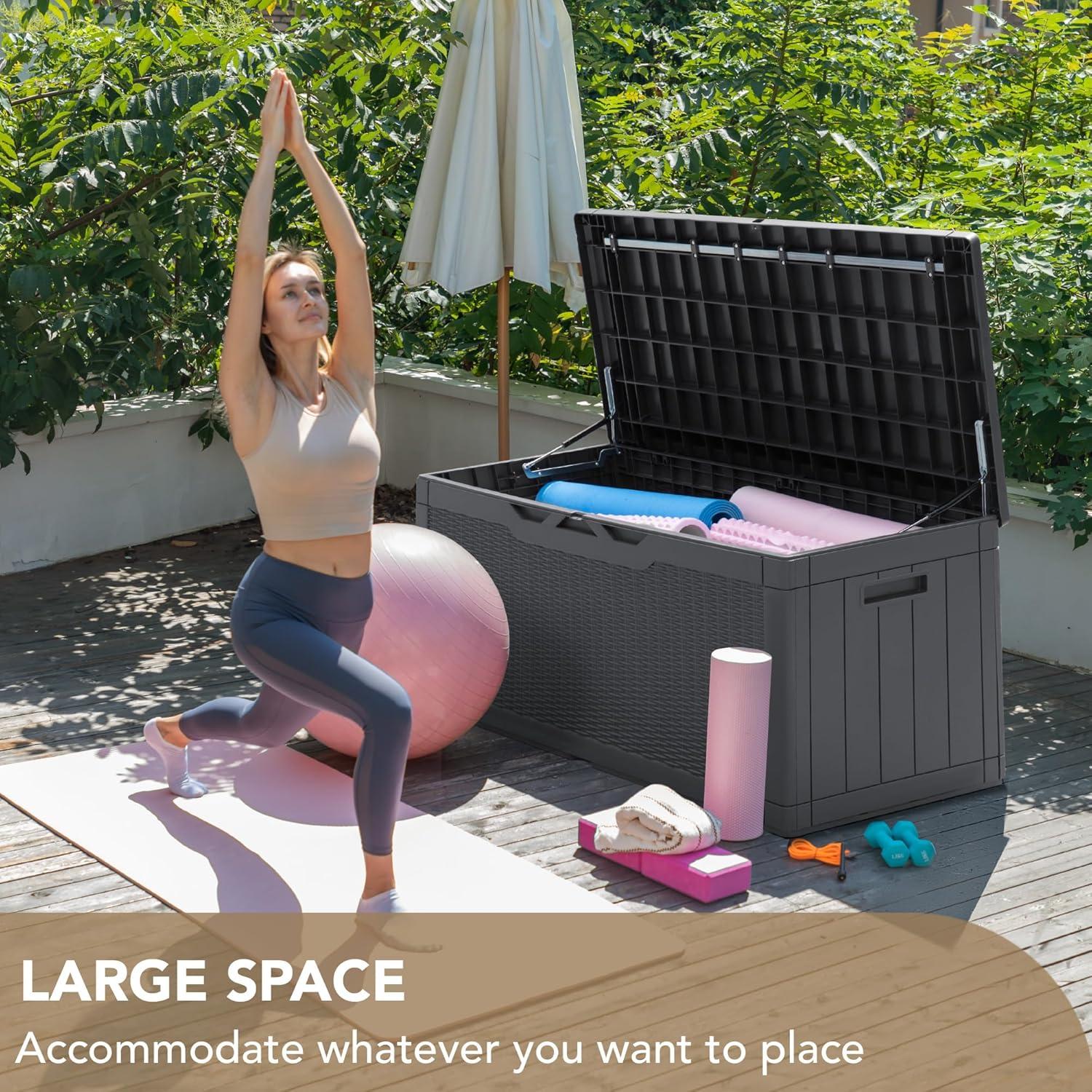 Large Storage Space: Outdoor storage box's extra large 120-gallon storage space helps you fit whatever you want, which is perfect for keeping your home and yard neat and organized