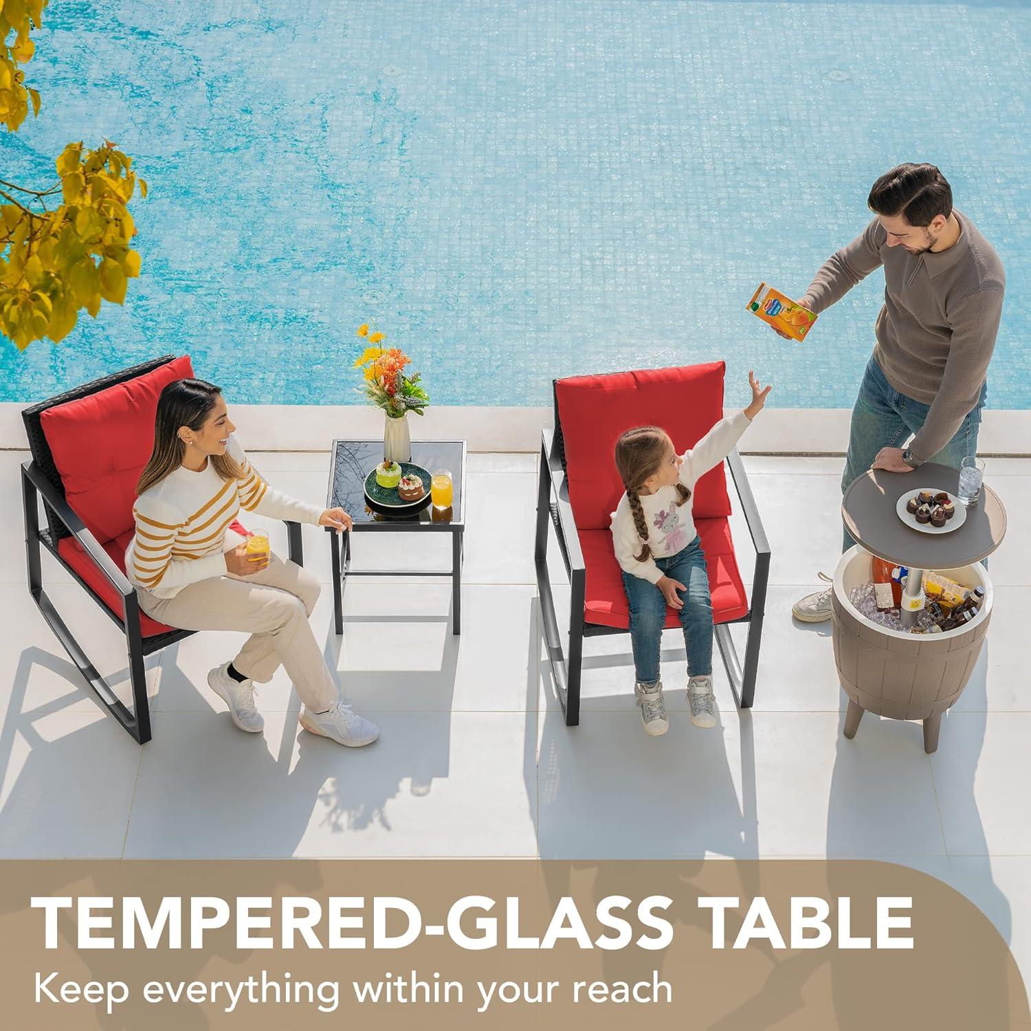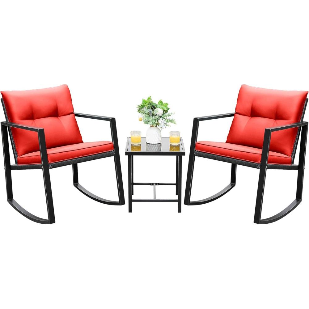 Be the first to review “Devoko 3 Piece Rocking Bistro Set Wicker Patio Outdoor Furniture Porch Chairs Conversation Sets with Glass Coffee Table (Beige)(Red)”