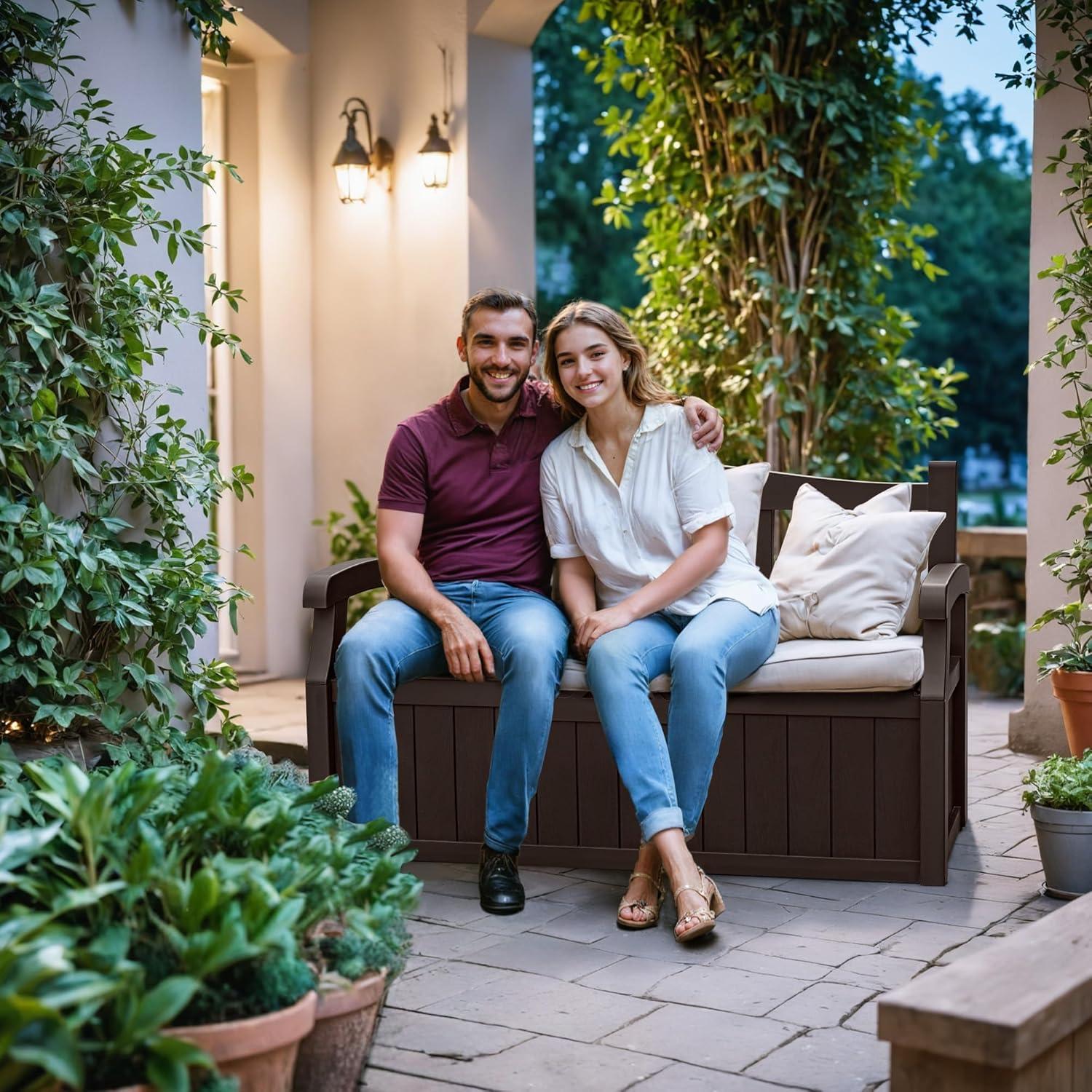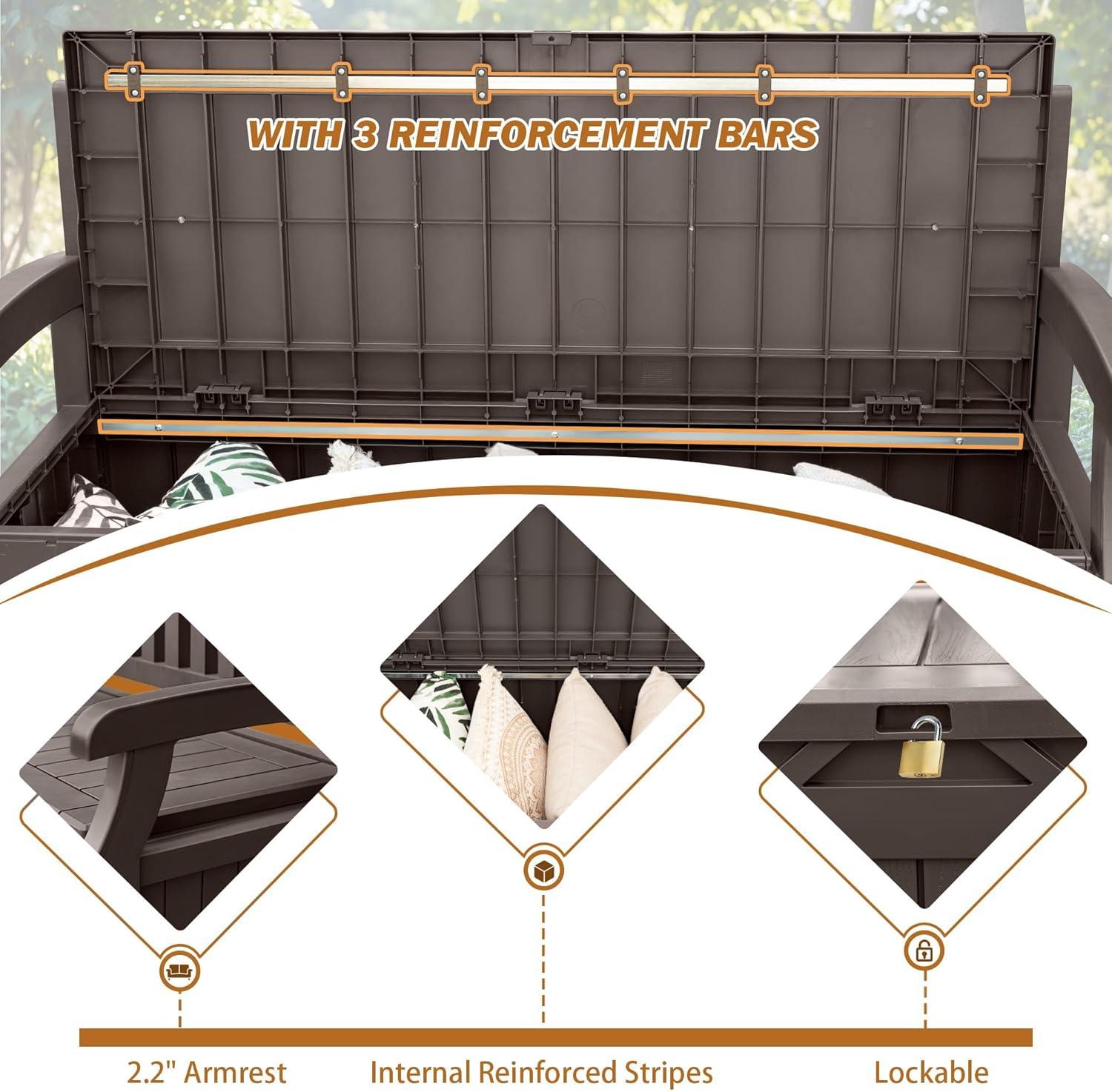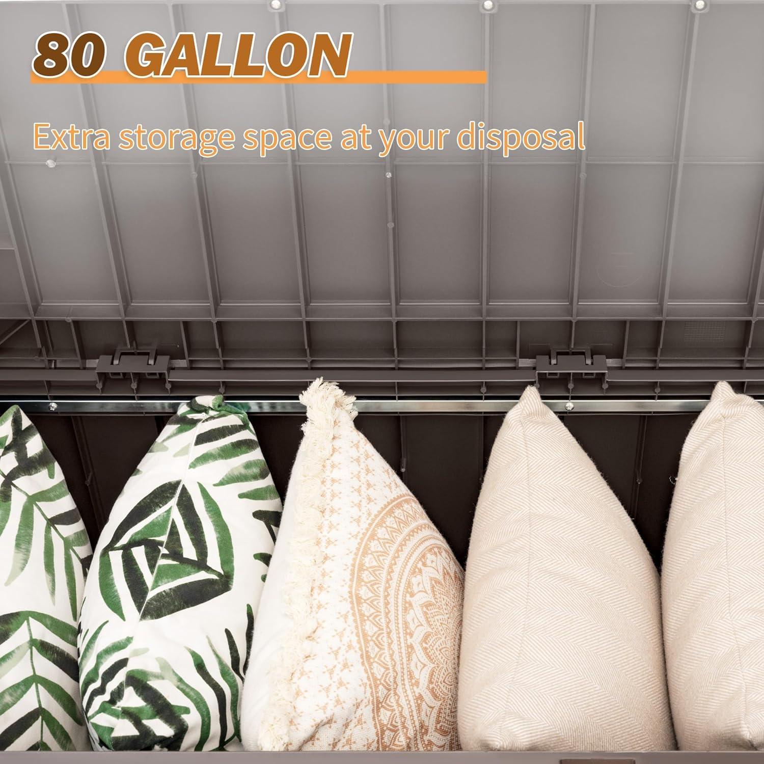 Devoko 80 Gallon Storage Bench Deck Box Lockable for Patio Furniture, Garden Decor and Outdoor Seating for Cushions, Garden Tools and Pool Supplies (Black)(Brown)