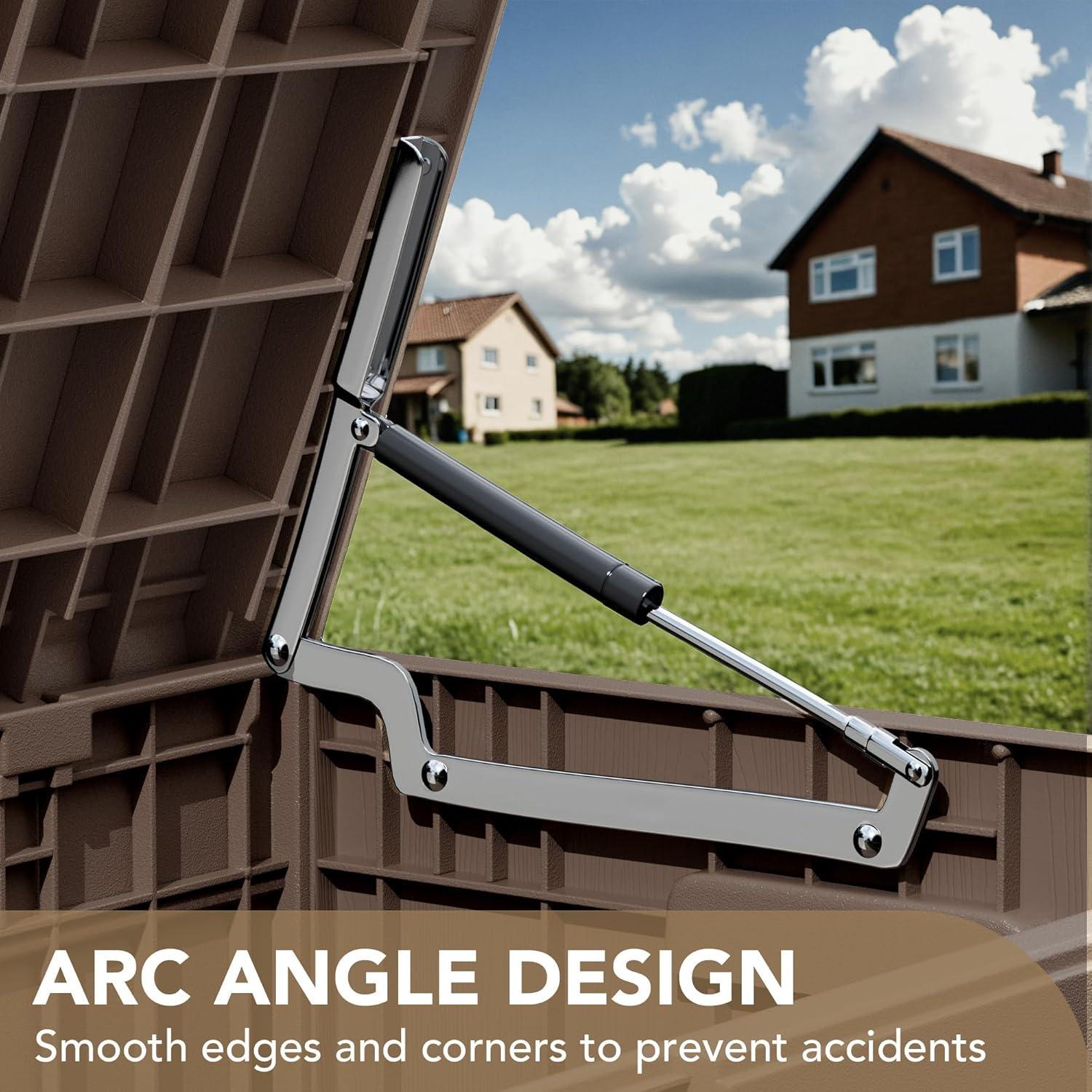 Careful Design: The lockable deck box can protect the safety of internal articles. The double hydraulic gas rod design makes the top of box open easily or close slowly. The side handle provides convenience for moving