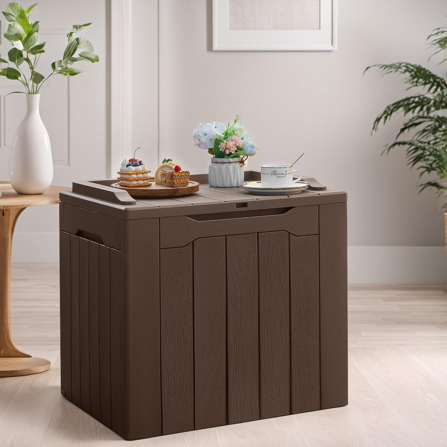 Imitation Wood Surface: This outdoor deck box with Imitation board appearance is an excellent organizer in outdoor life. It is suitable for matching various outdoor items and will become a perfect decoration for the deck or backyard