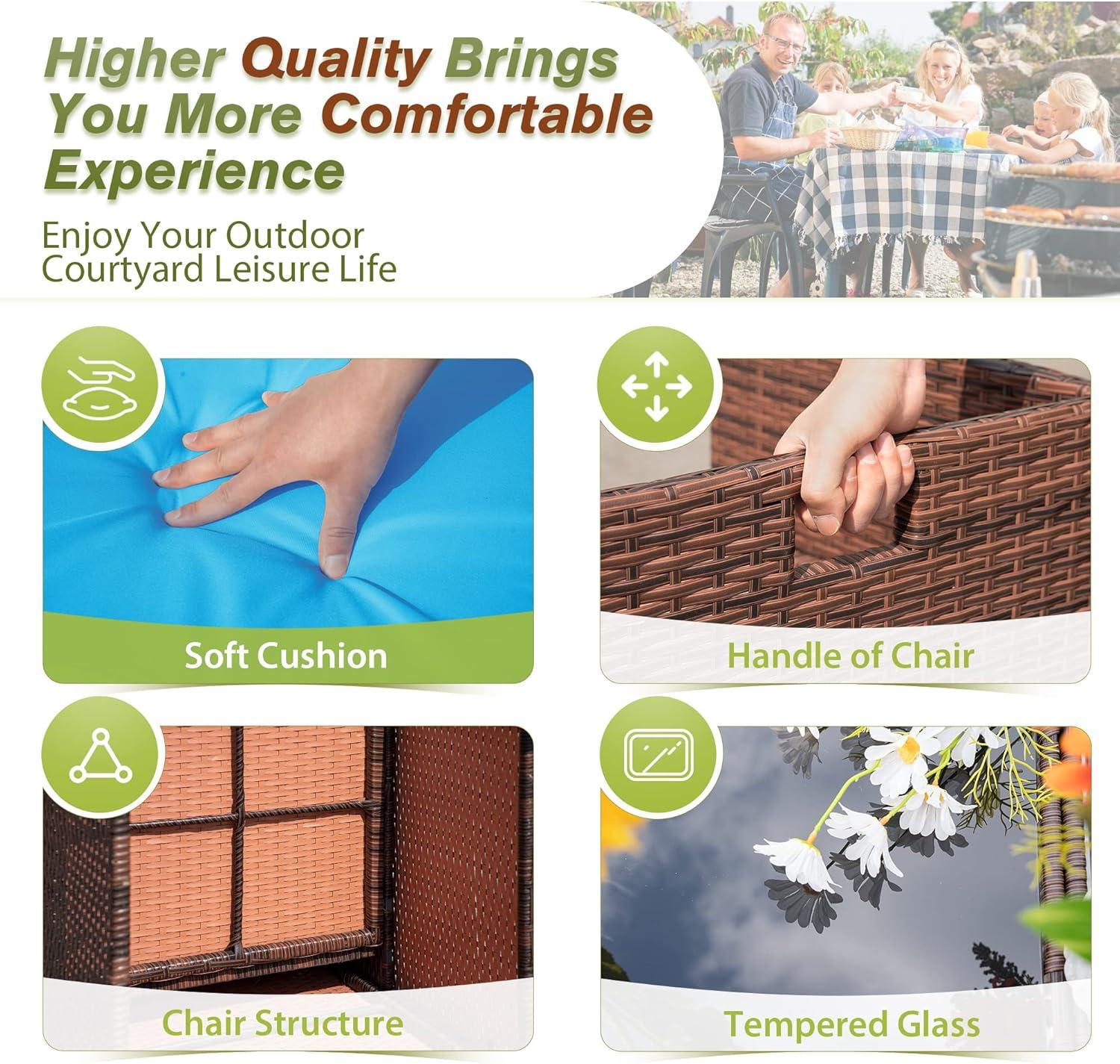 imageDevoko 9 Pieces Patio Dining Sets Outdoor Space Saving Rattan Chairs with Glass Table Patio Furniture Sets Cushioned Seating and Back Sectional Conversation Set BeigeBrownBlue