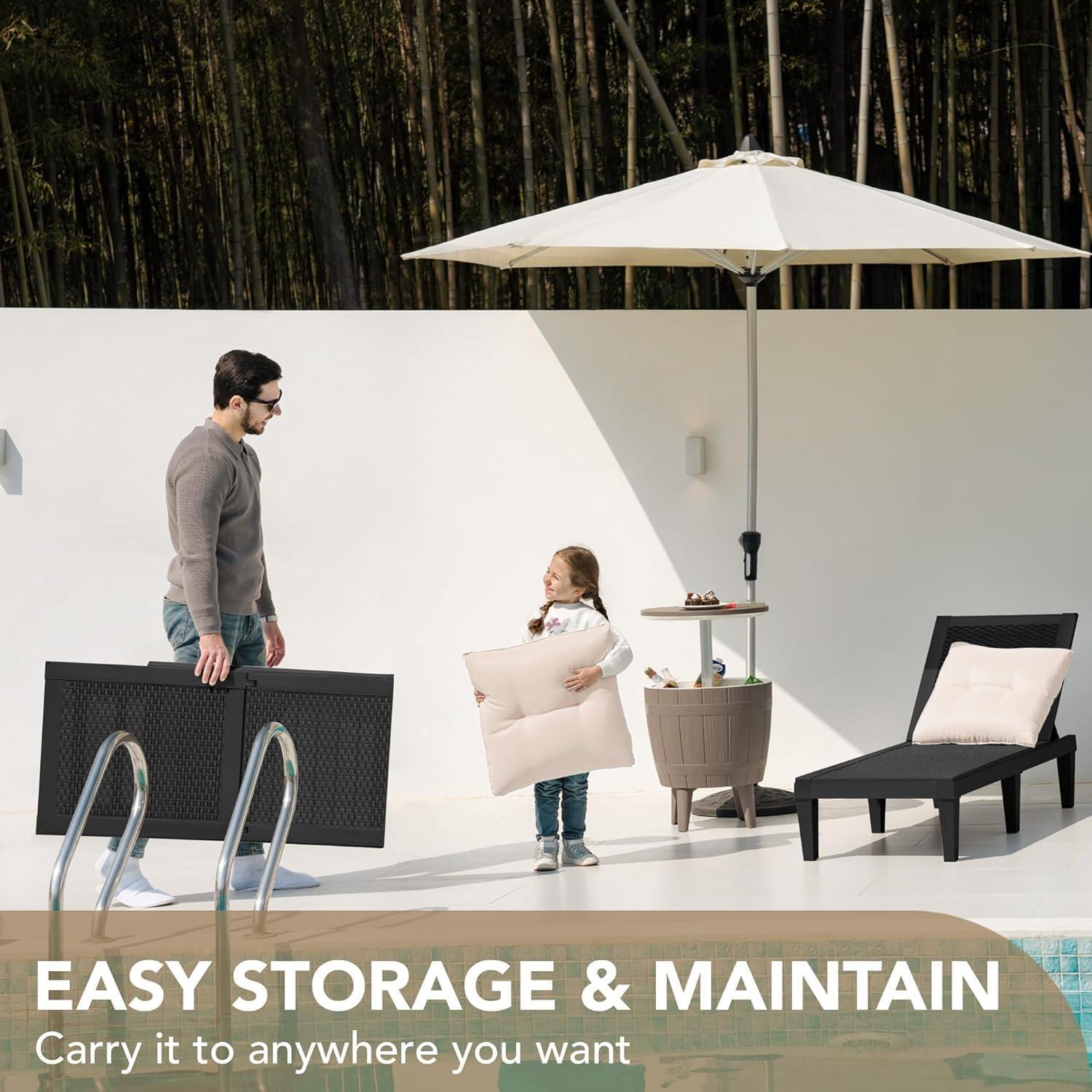 Top-notch Material: Lounge chairs for outside are crafted from premium polypropylene material, ensuring both durability and reliability and its sturdy base effectively prevents bending. With its fade-resistant properties and UV-Resistant, lounge chair offers long-lasting protection throughout all seasons of the year.