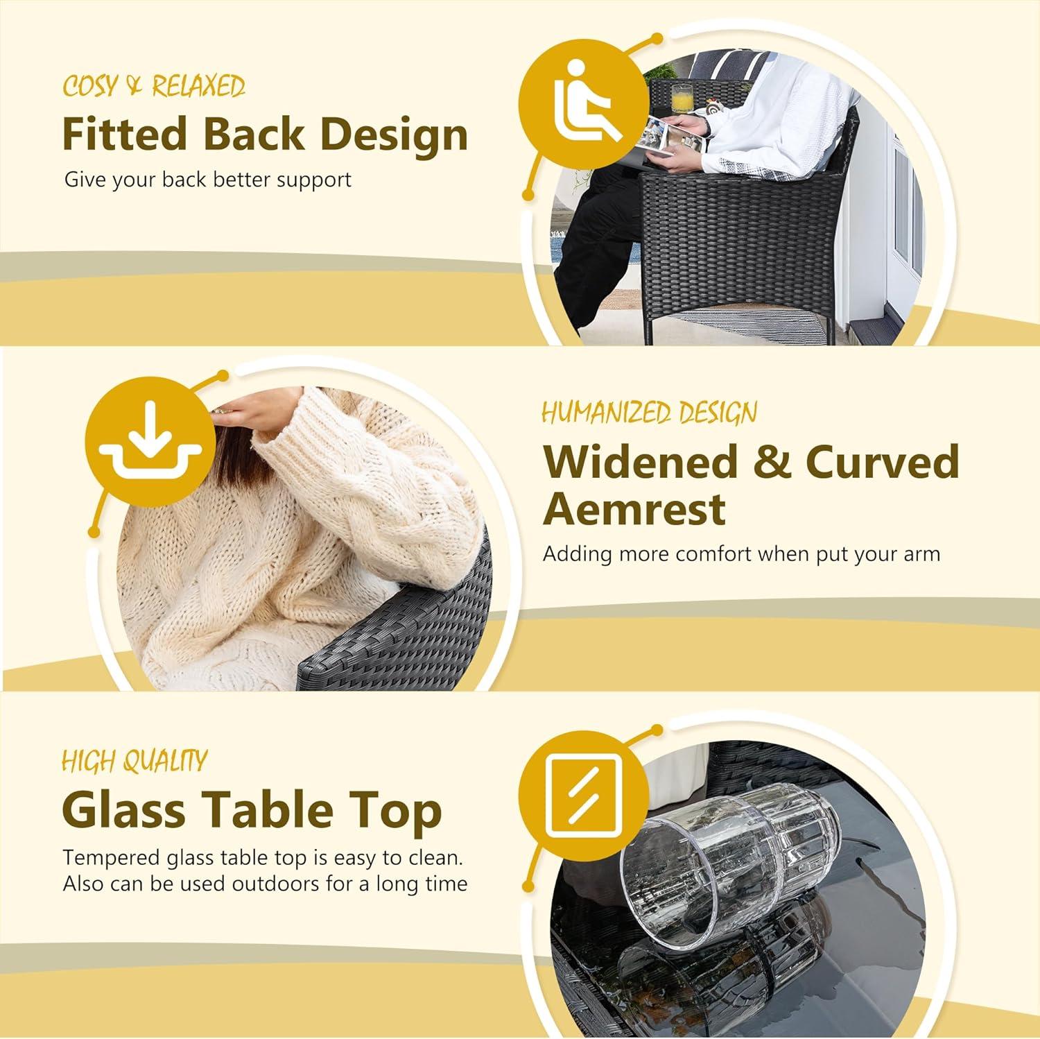 Sturdy & Durable Construction: Outer frame is made of all-weather resistant and chemical resistant PE rattan, which helps to slow fading and increase durability. Powder-coated steel can prevent itself from rusting while increasing the stability. Each seat is built to withstand 335lb and the coffee table can bear 65lb.