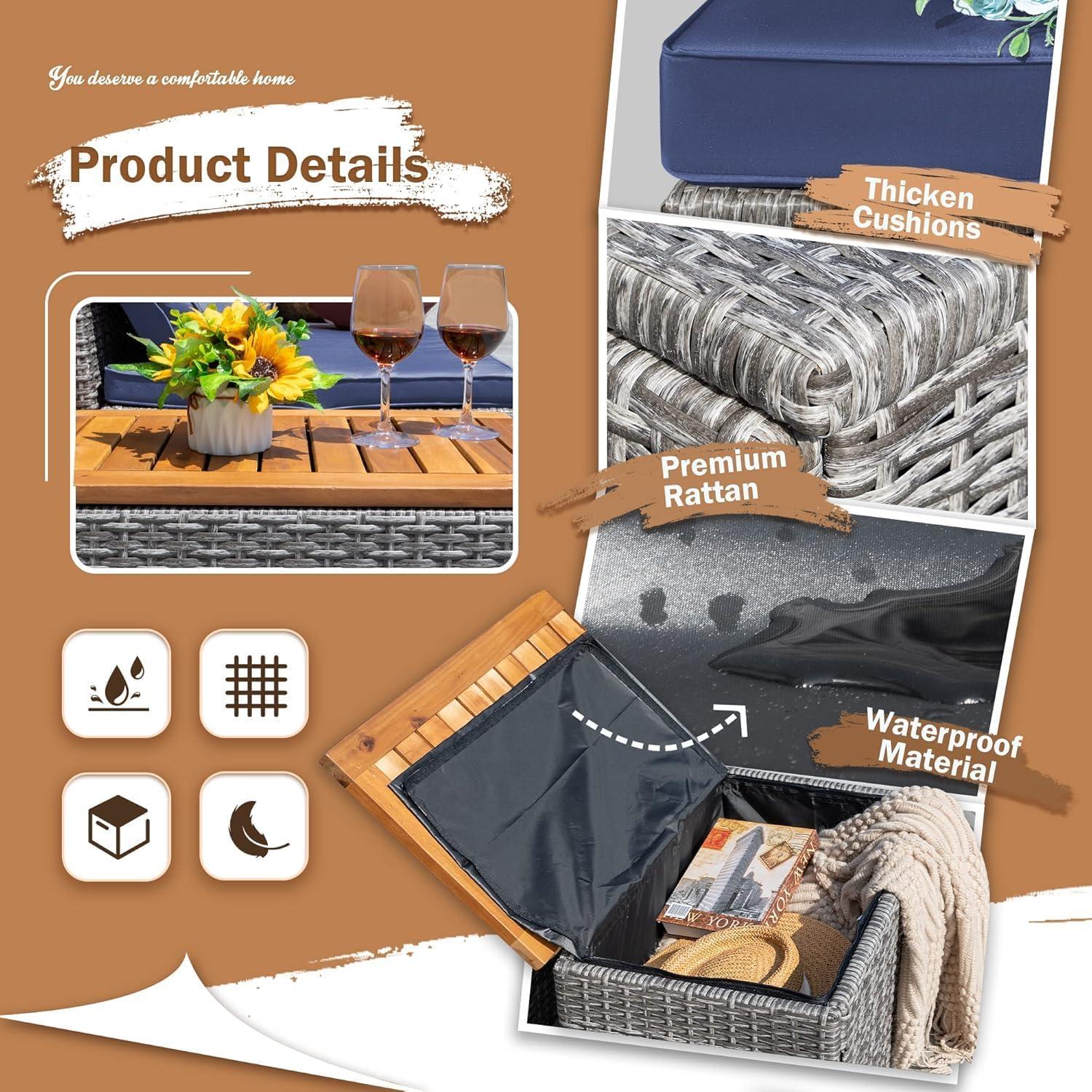 Space-saving Design:When you are worried that the activity area is too small, the footstool of rattan daybed can be pushed under the sofa, and the footstool and two small tables can be used as storage boxes,a lot of things can be stored in it ,saving a lot of storage space