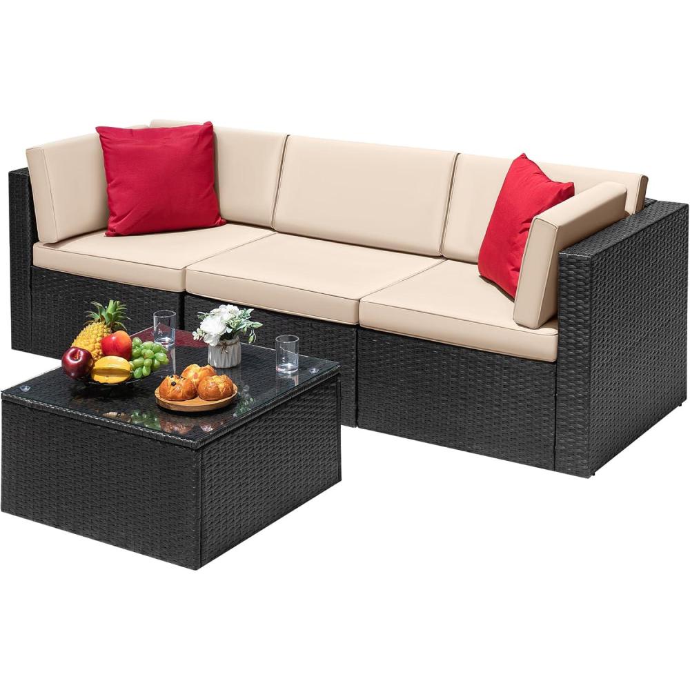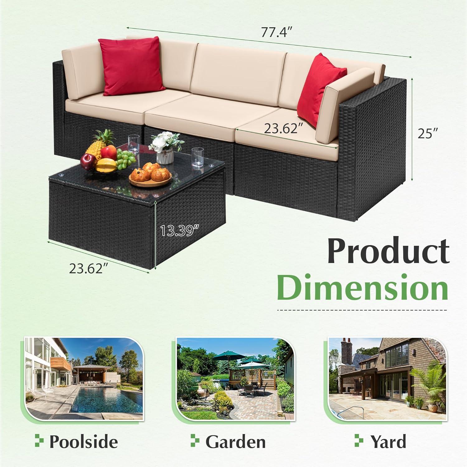 – Sectional & Suitable: Patio furniture Sectional sofa sets freely rearranged into different combination for different occasions. The sectional sofa is widely used for outdoor patio, porch, backyard, balcony, poolside, garden and other suitable space in your home(When you don't use it, advise you to take cushions inside or buy a cover for longer service time)