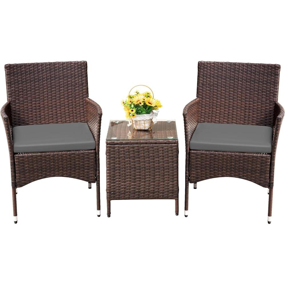 Devoko Patio Porch Furniture Sets 3 Pieces PE Rattan Wicker Chairs with Table Outdoor Garden Furniture Sets (Brown/Blue)(Brown/Grey)
