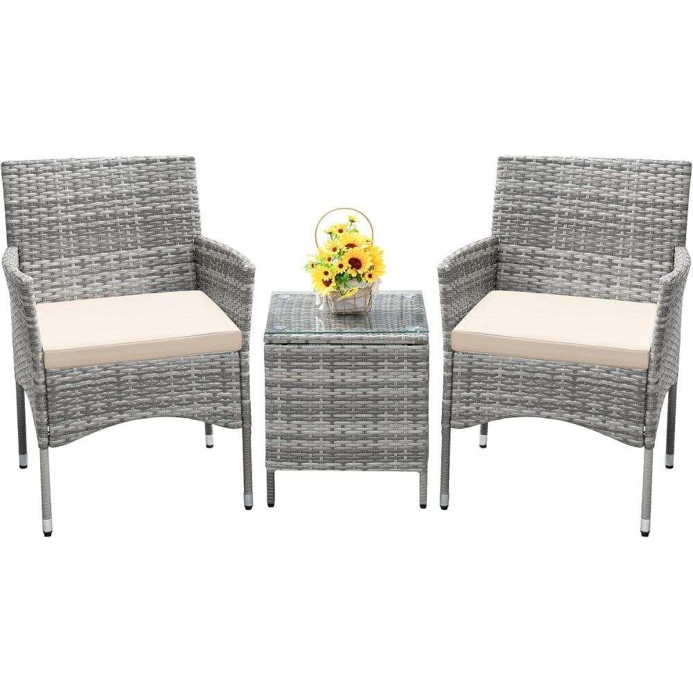 Devoko 3 Pieces Patio Furniture Set, PE Rattan Wicker Patio Set with Two Outdoor Chairs and Table, Upgraded Patio Chairs and Table for Porch, Garden Poolside Balcony